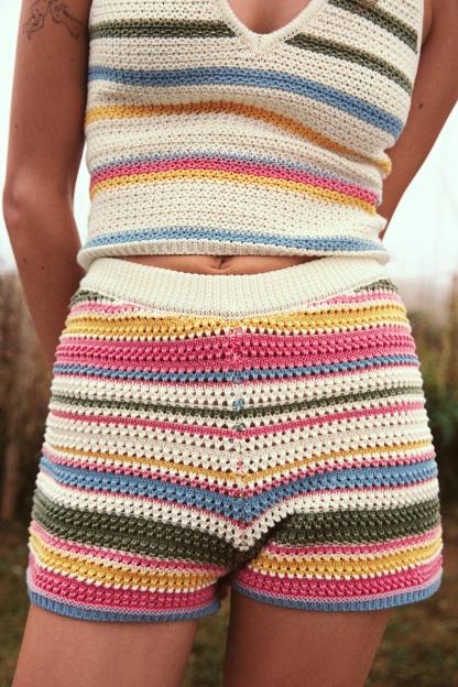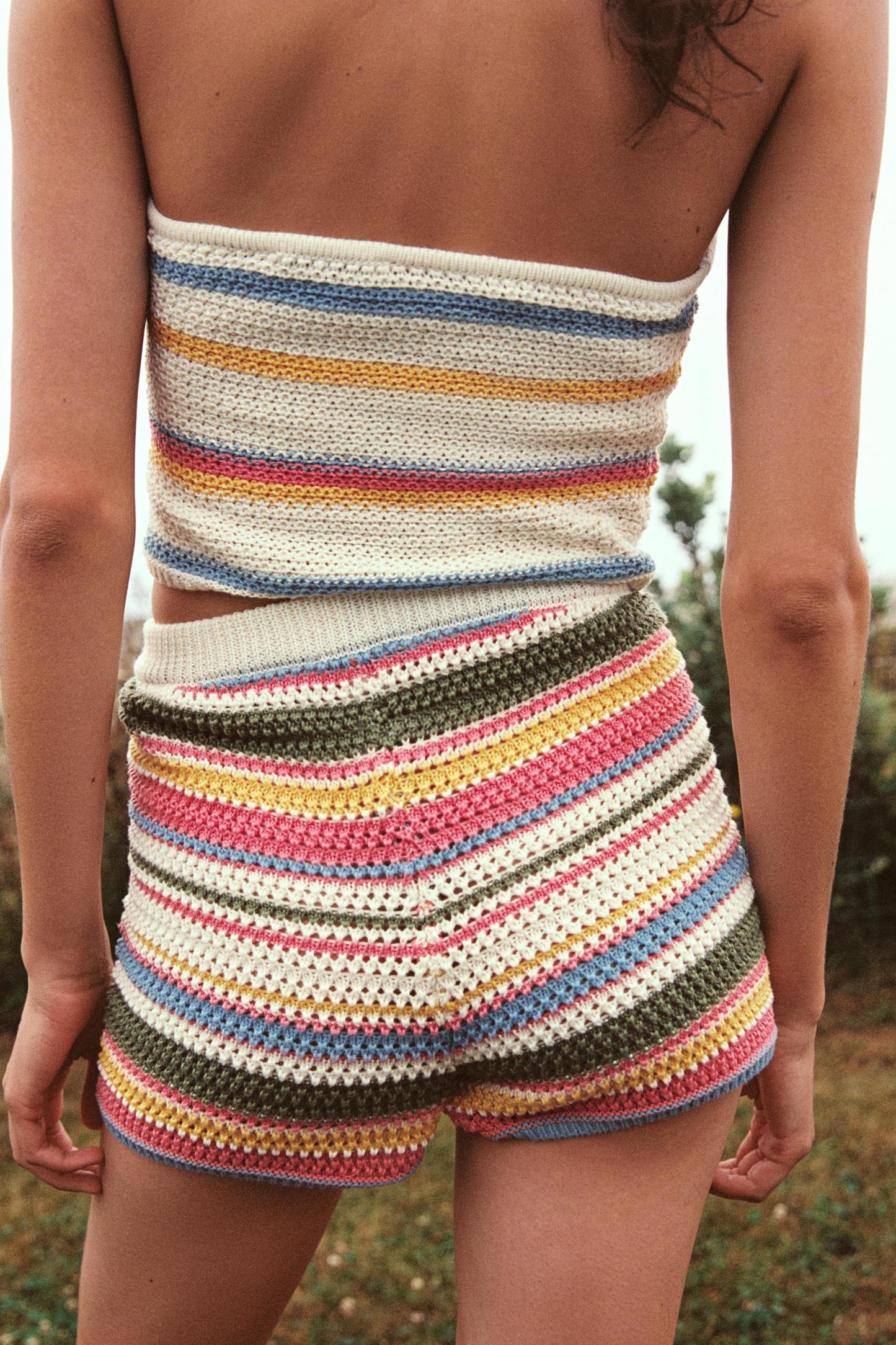 STRIPED CROCHET SHORTS