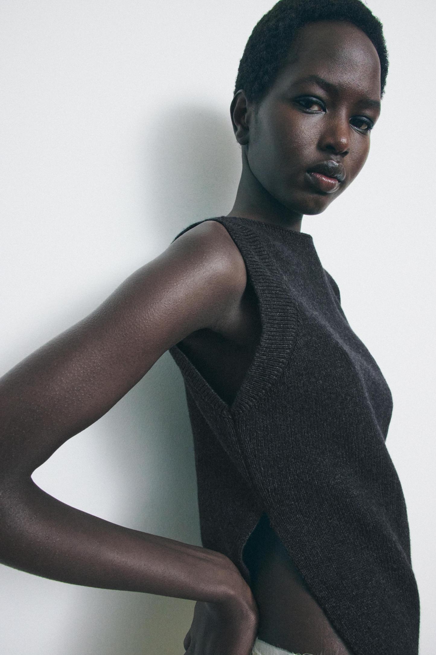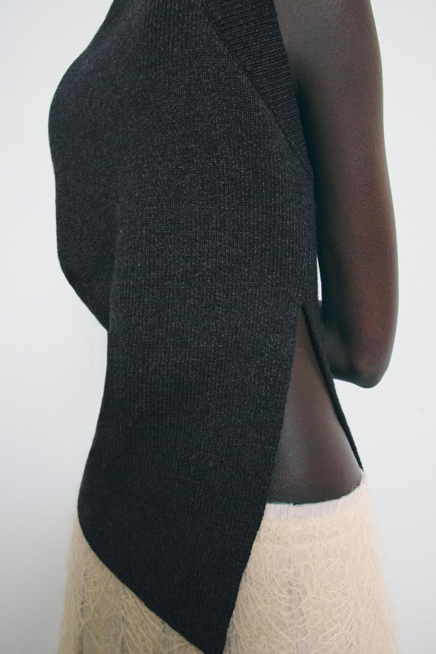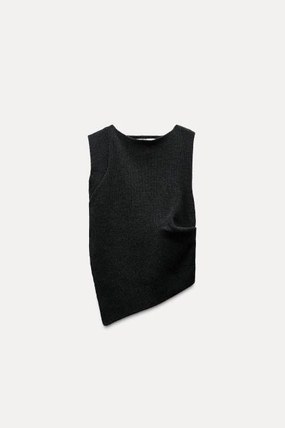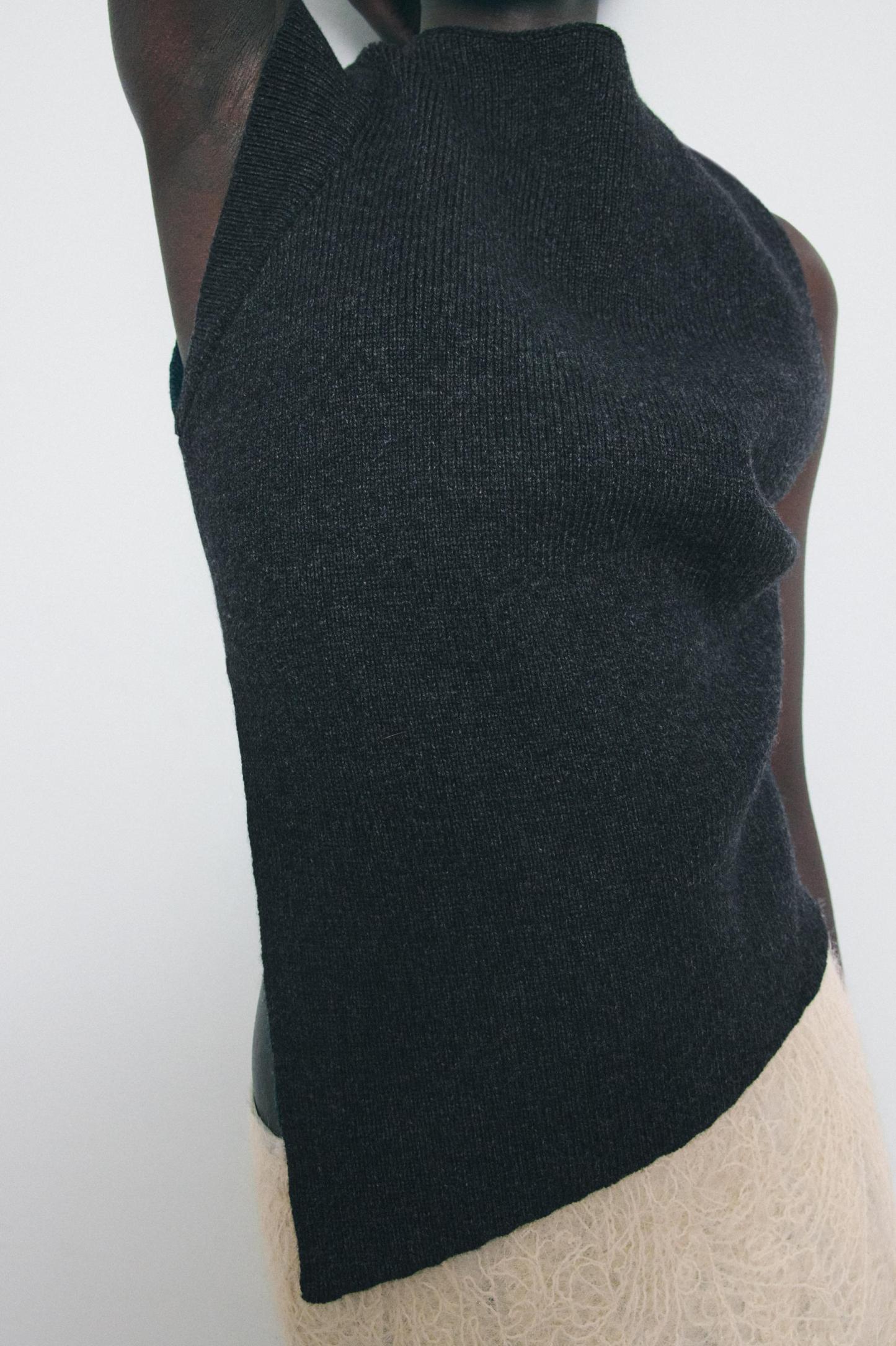 STRUCTURED PLEATED WOOL BLEND VEST