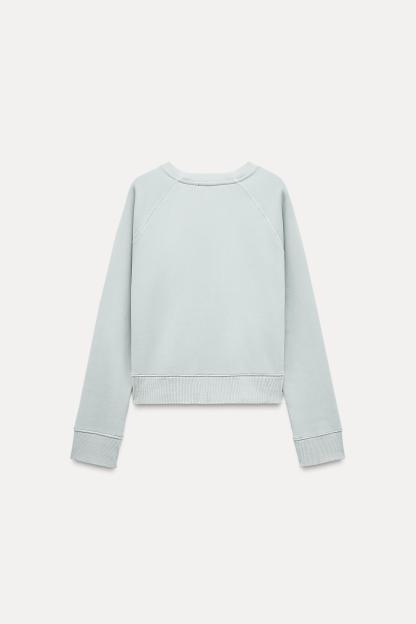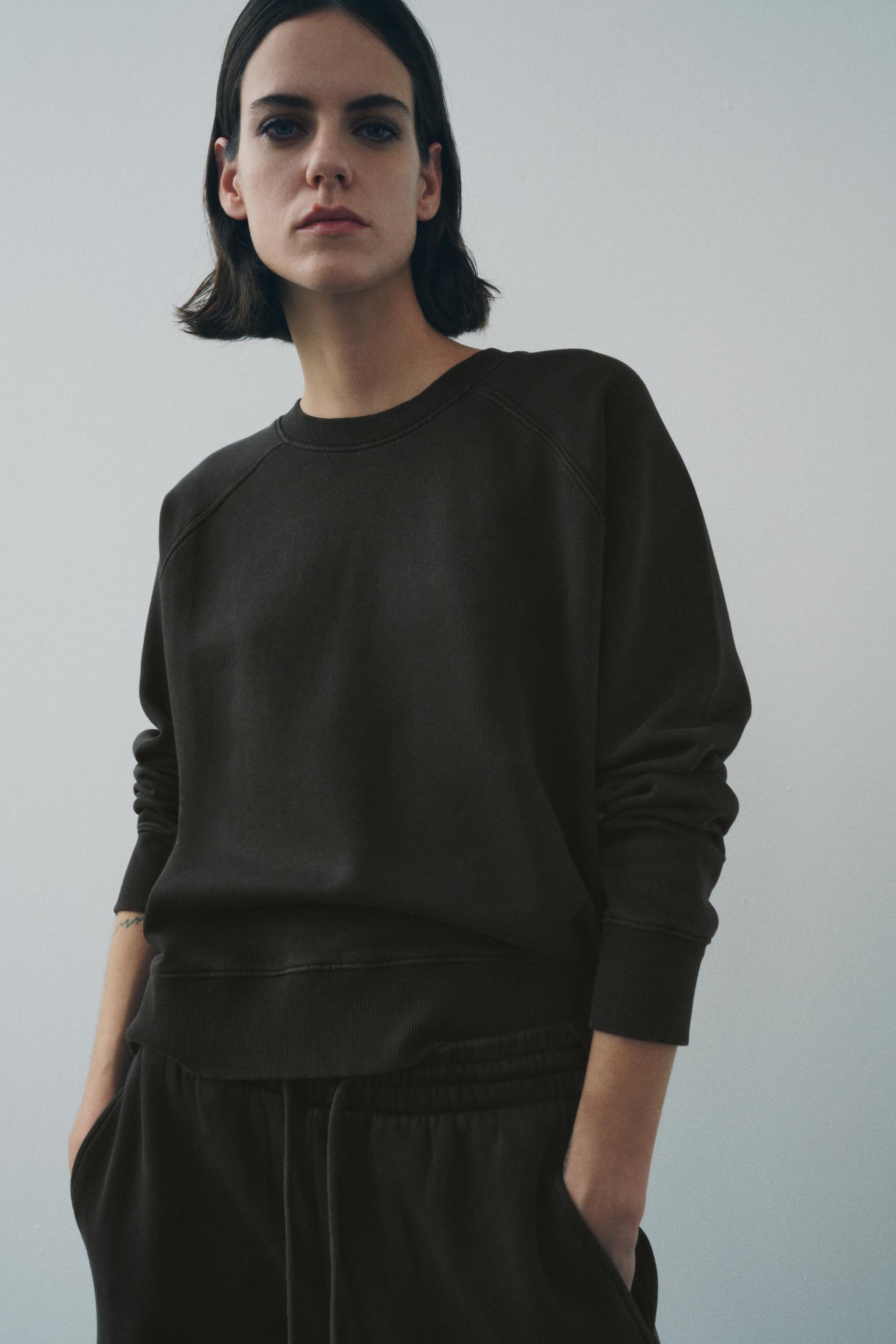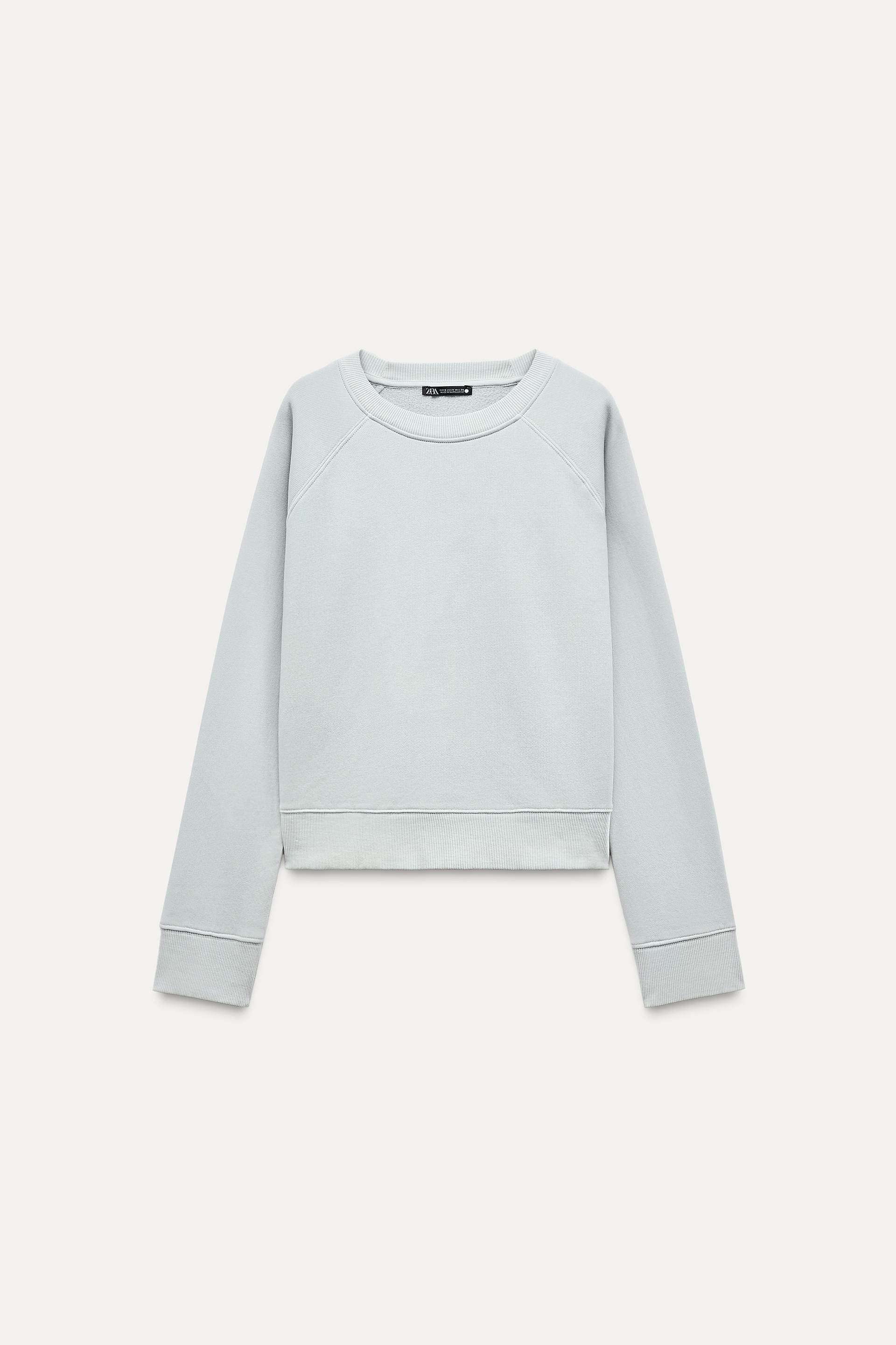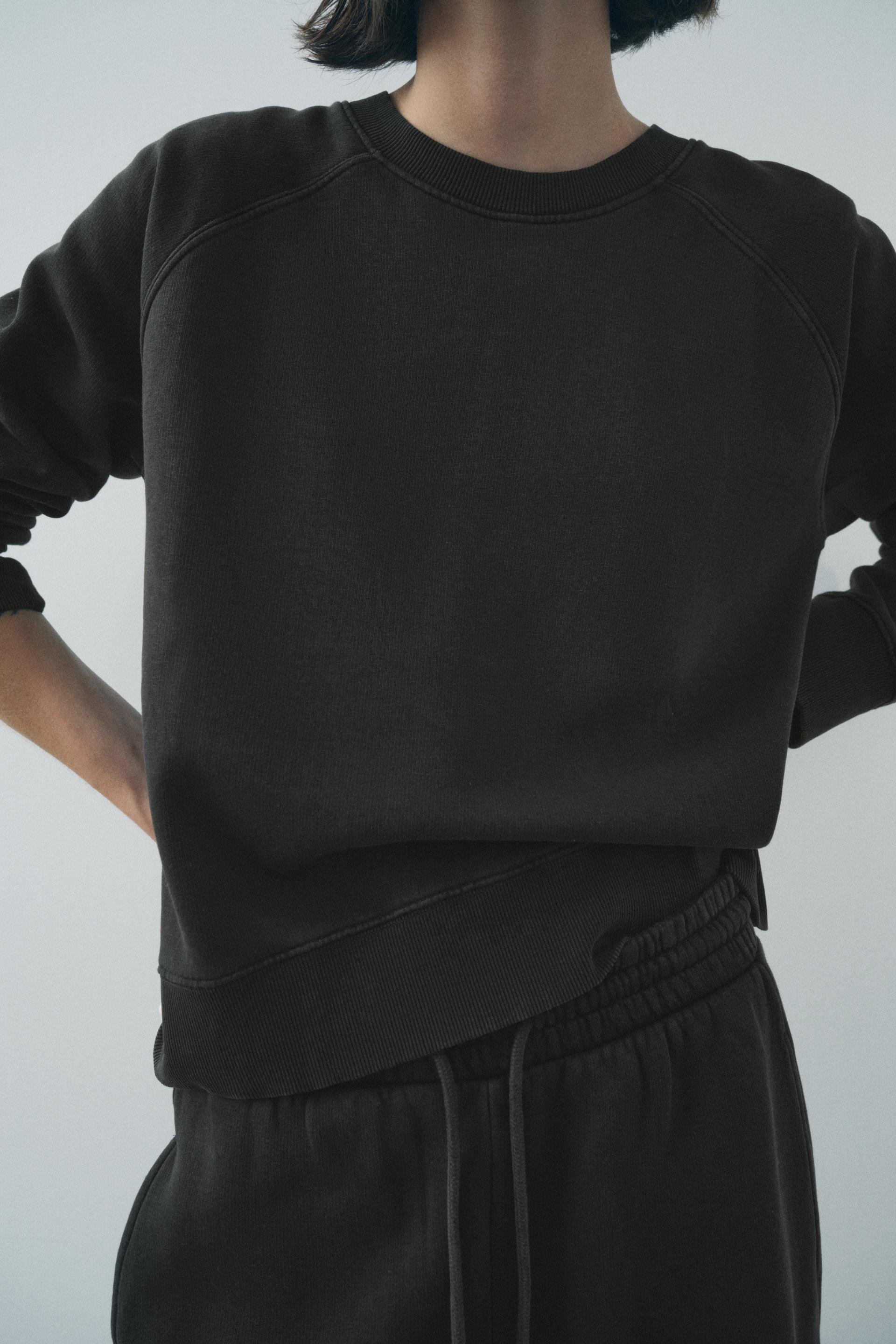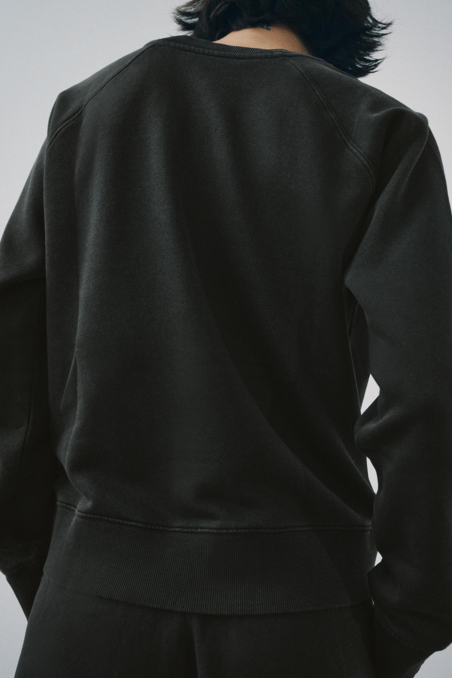 Sweatshirt made of spun cotton blend fabric. Round neck and long raglan sleeves. Tonal rib trim.