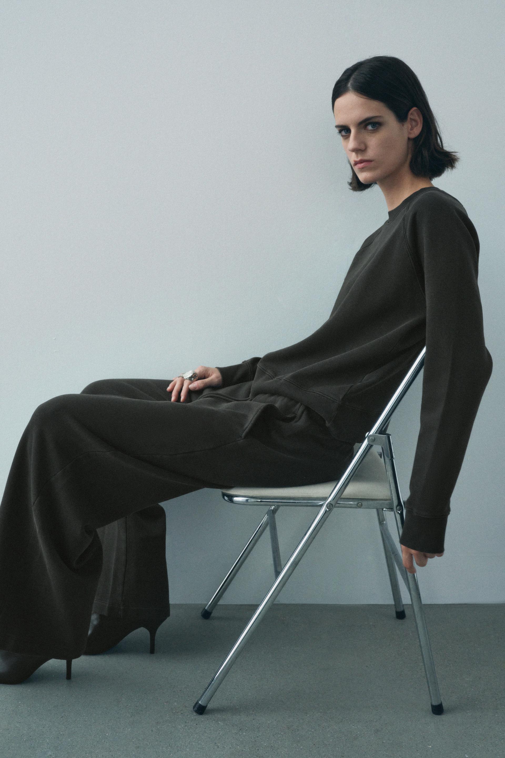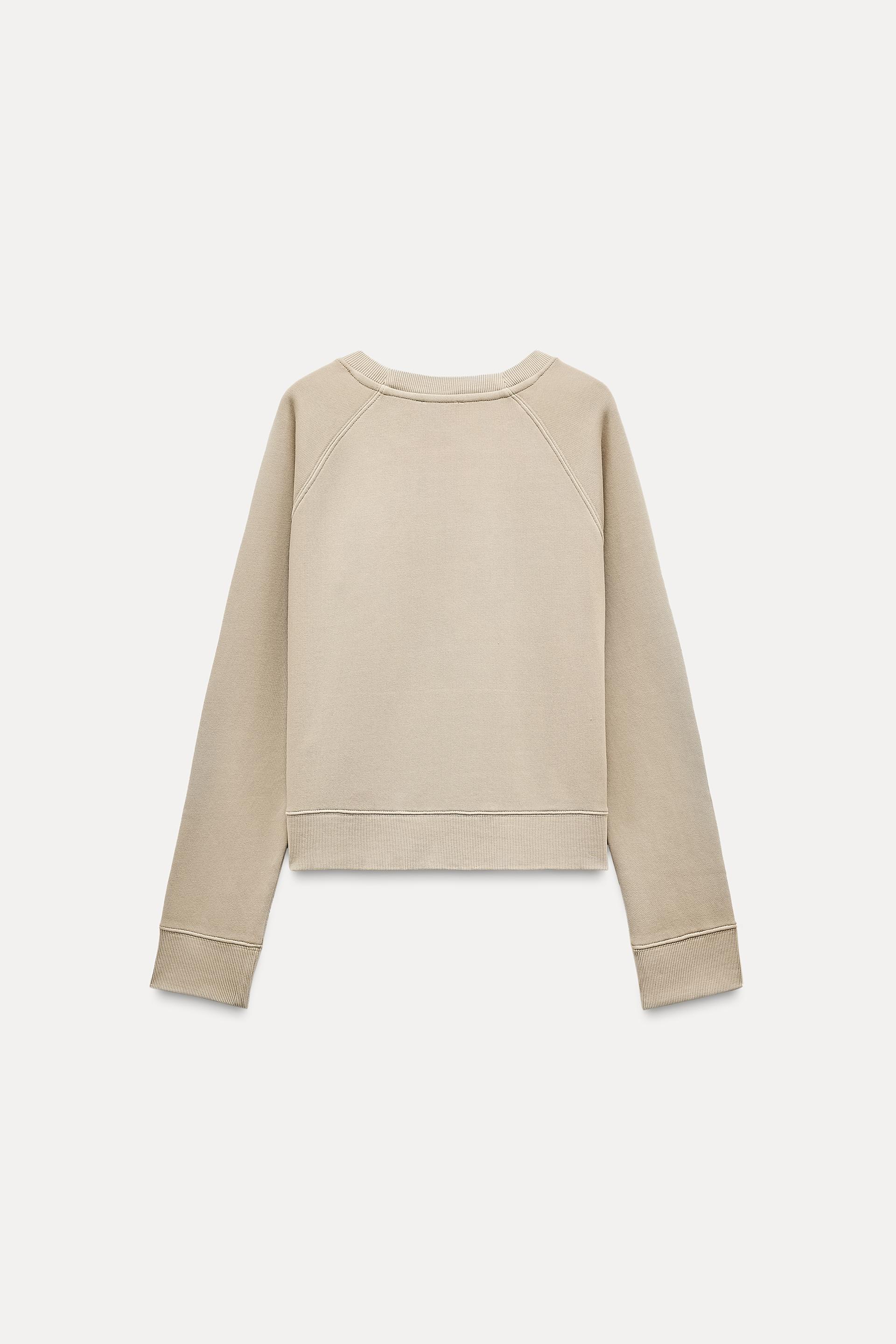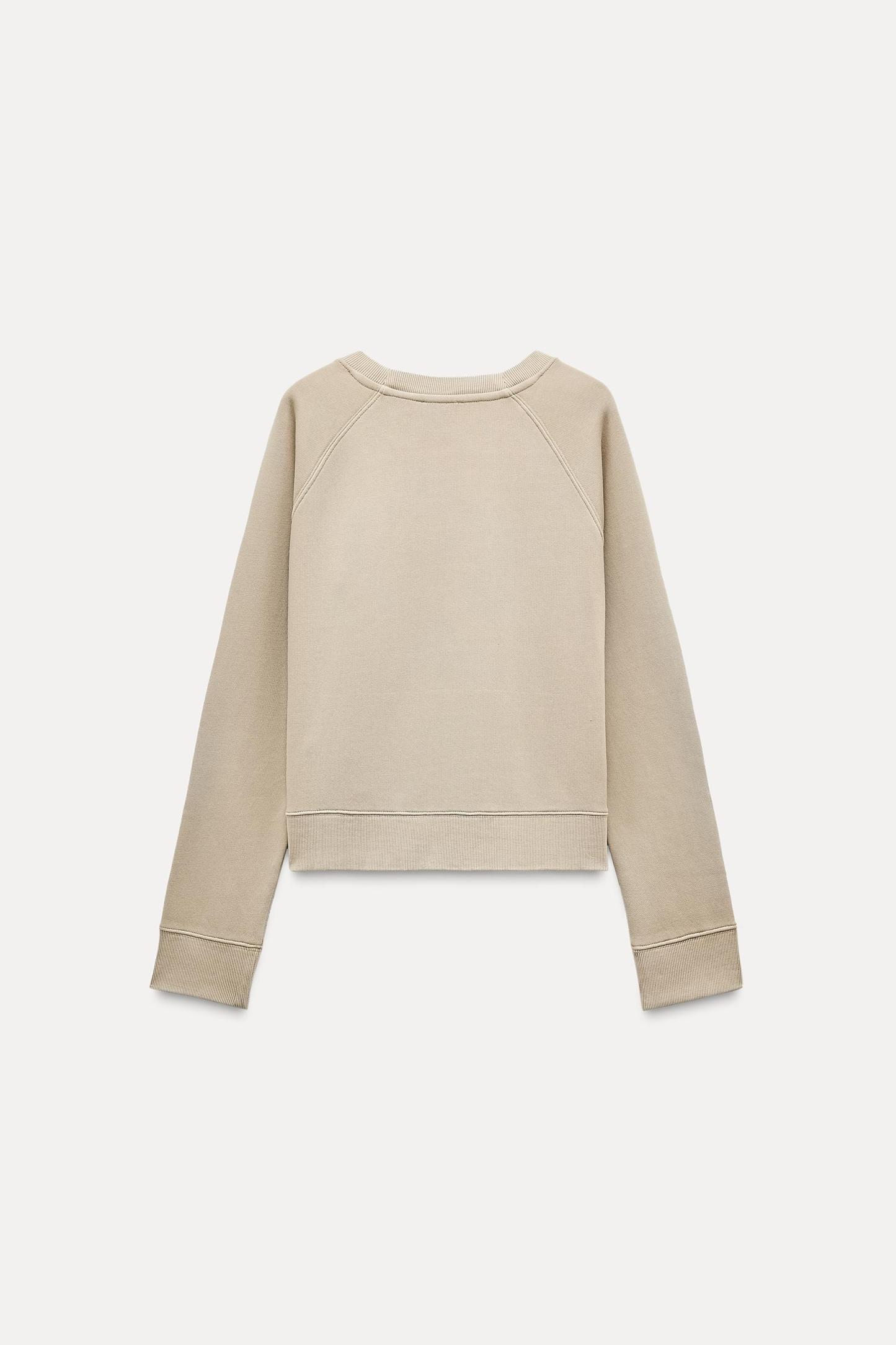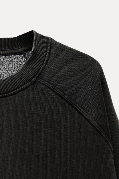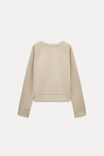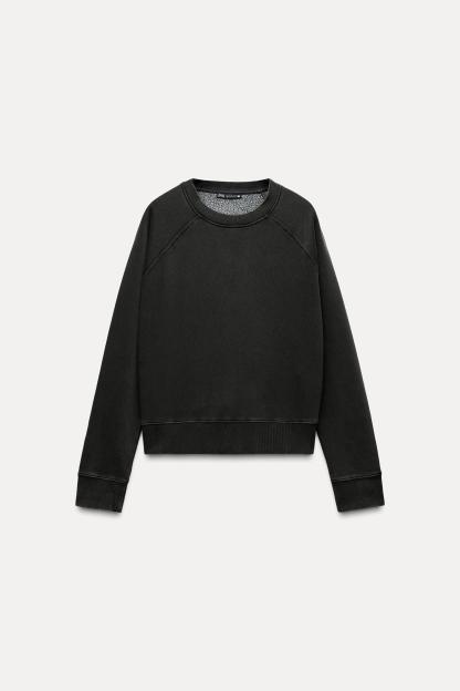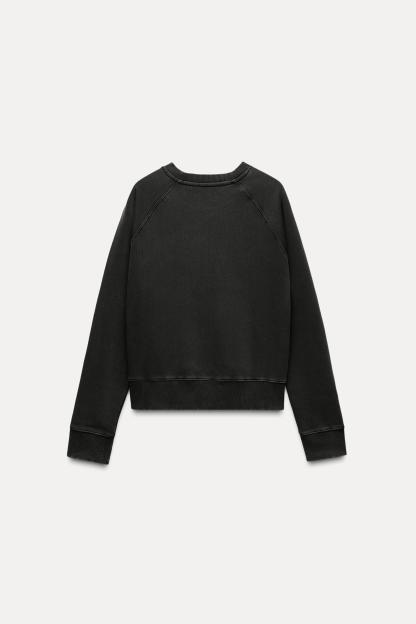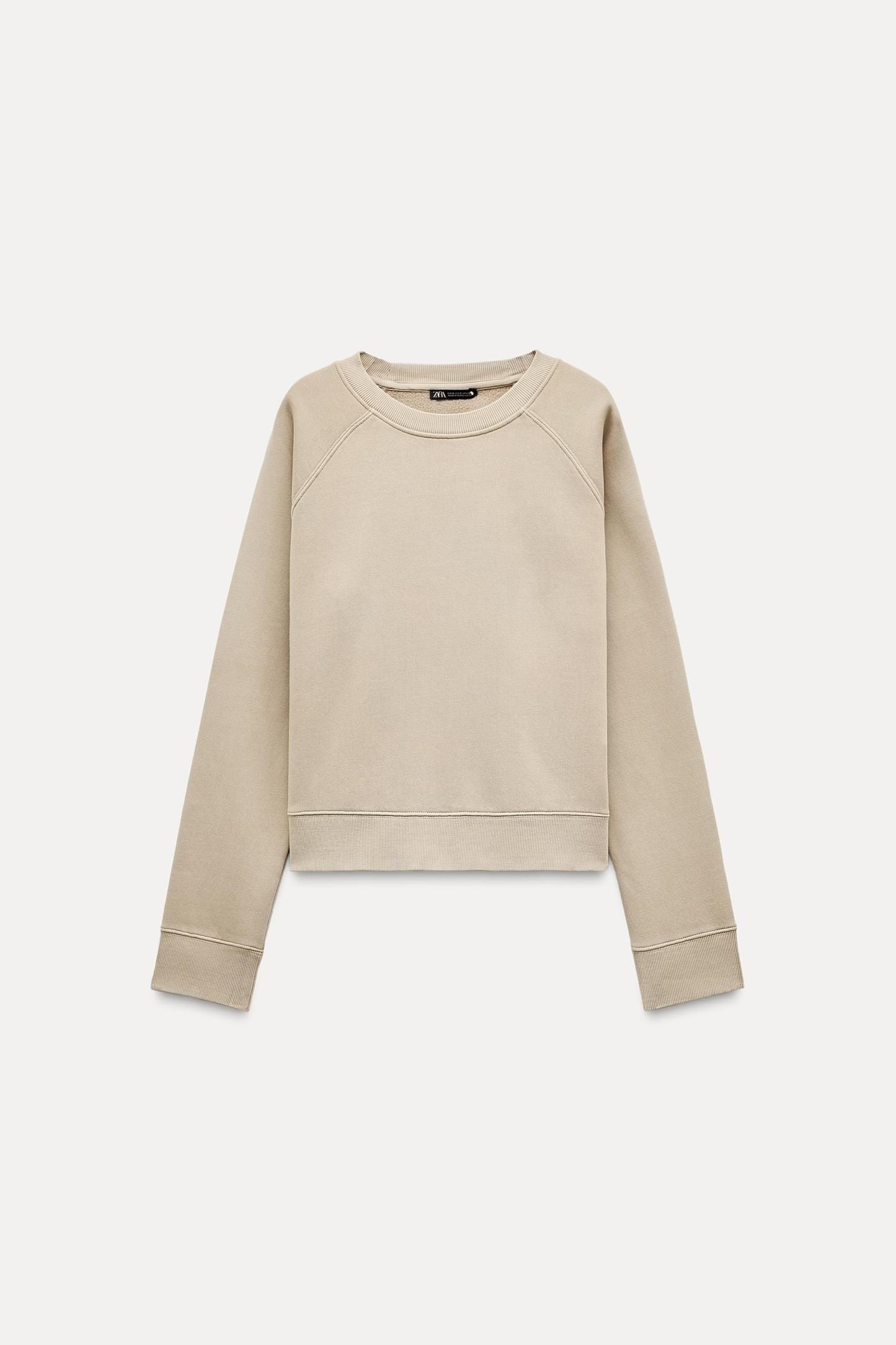 Sweatshirt made of spun cotton blend fabric. Round neck and long raglan sleeves. Tonal rib trim.