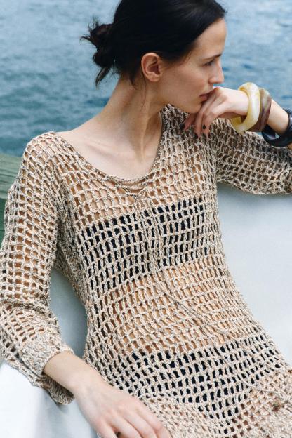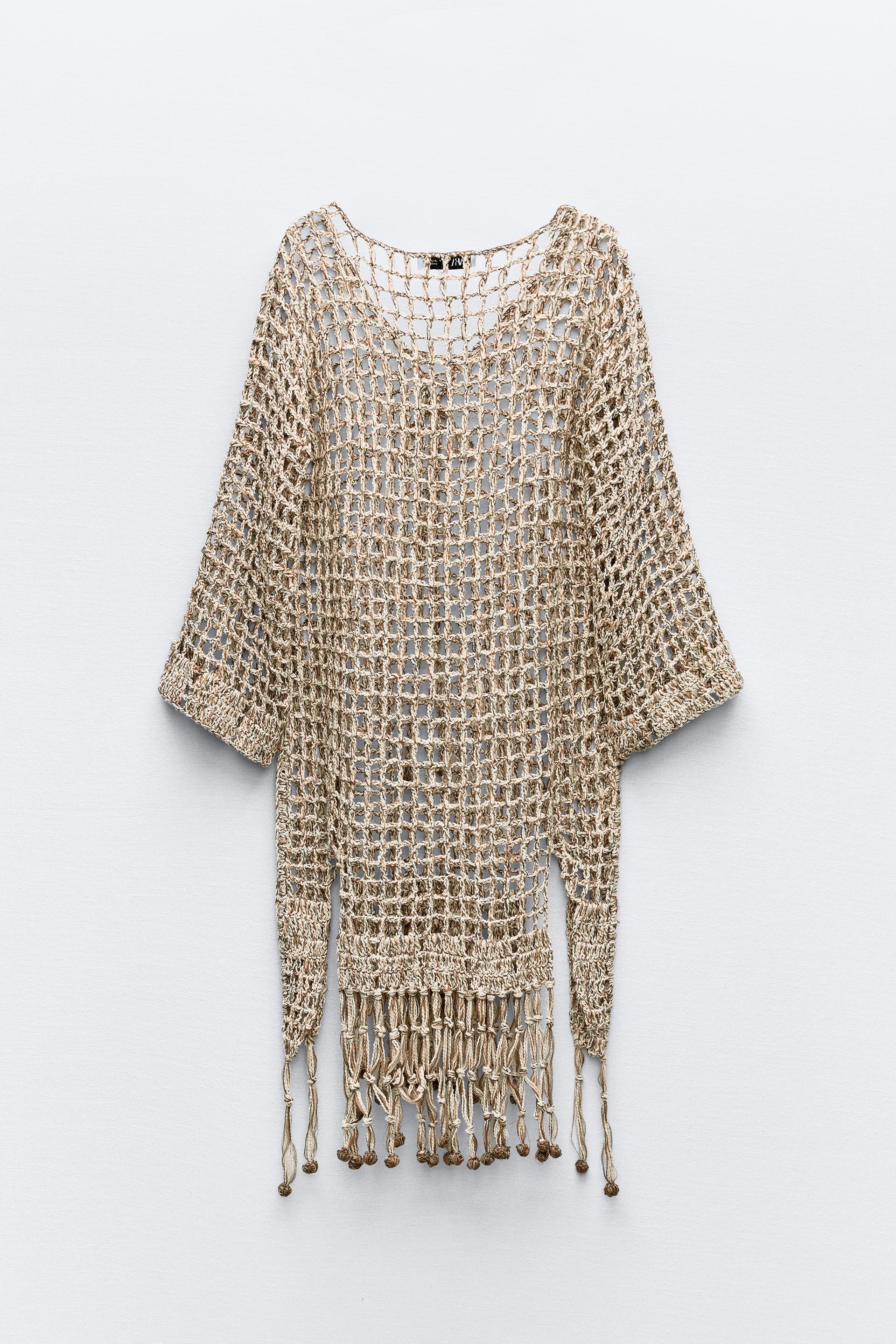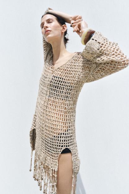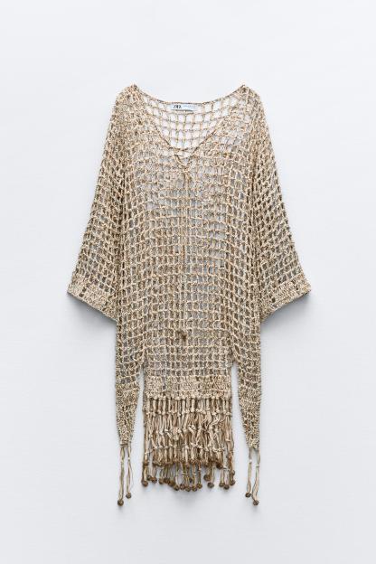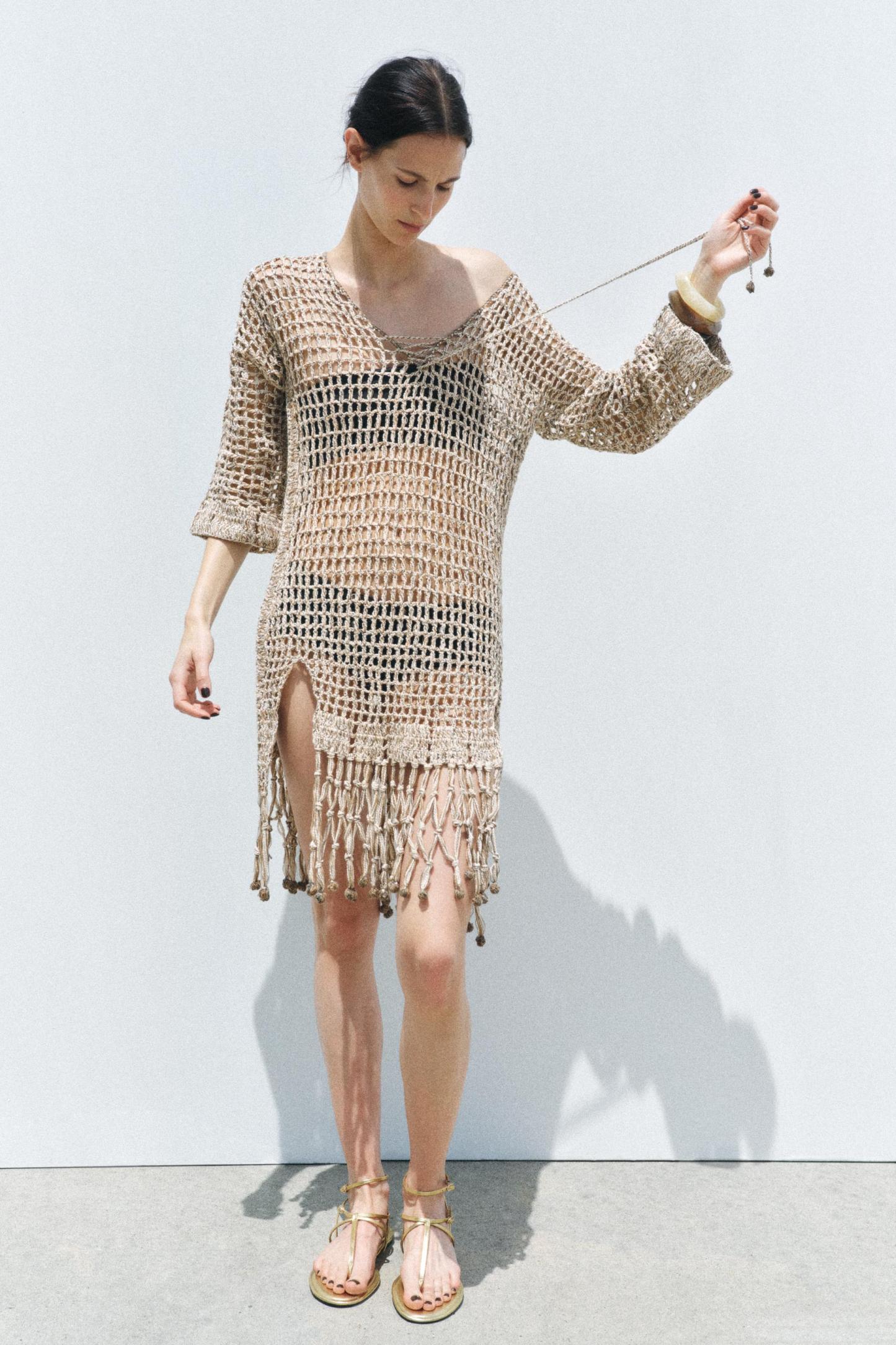 TASSELED CROCHET KAFTAN DRESS
