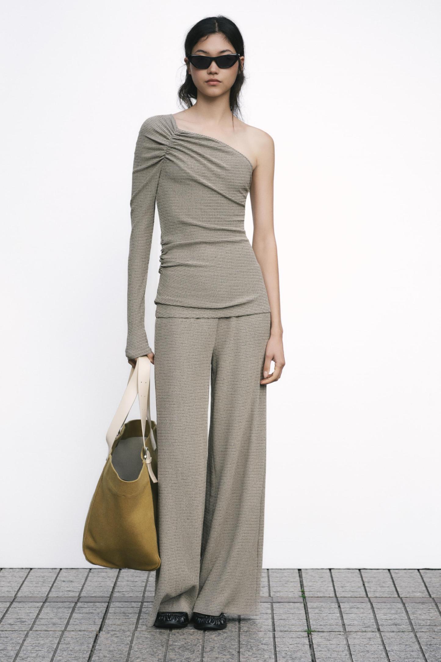 TEXTURED WIDE LEG PANTS