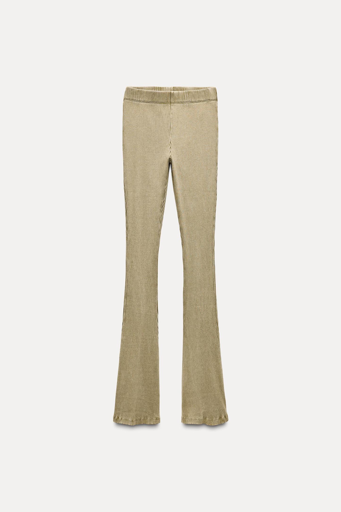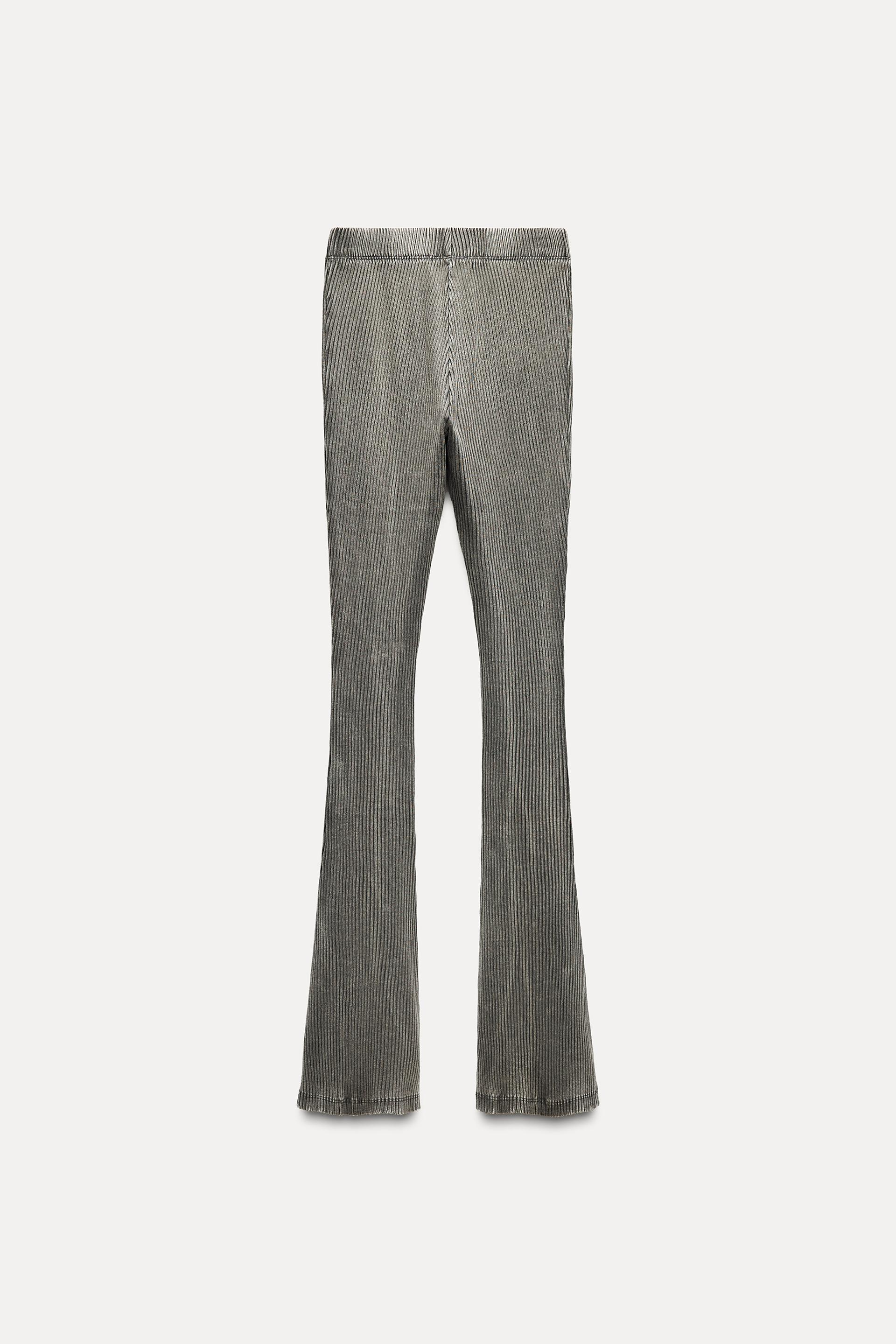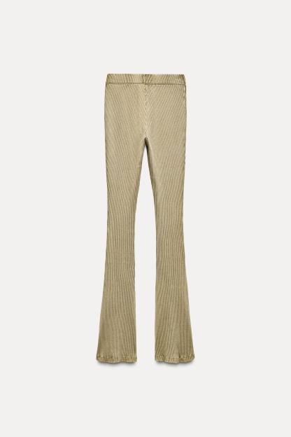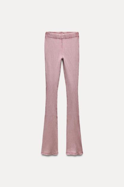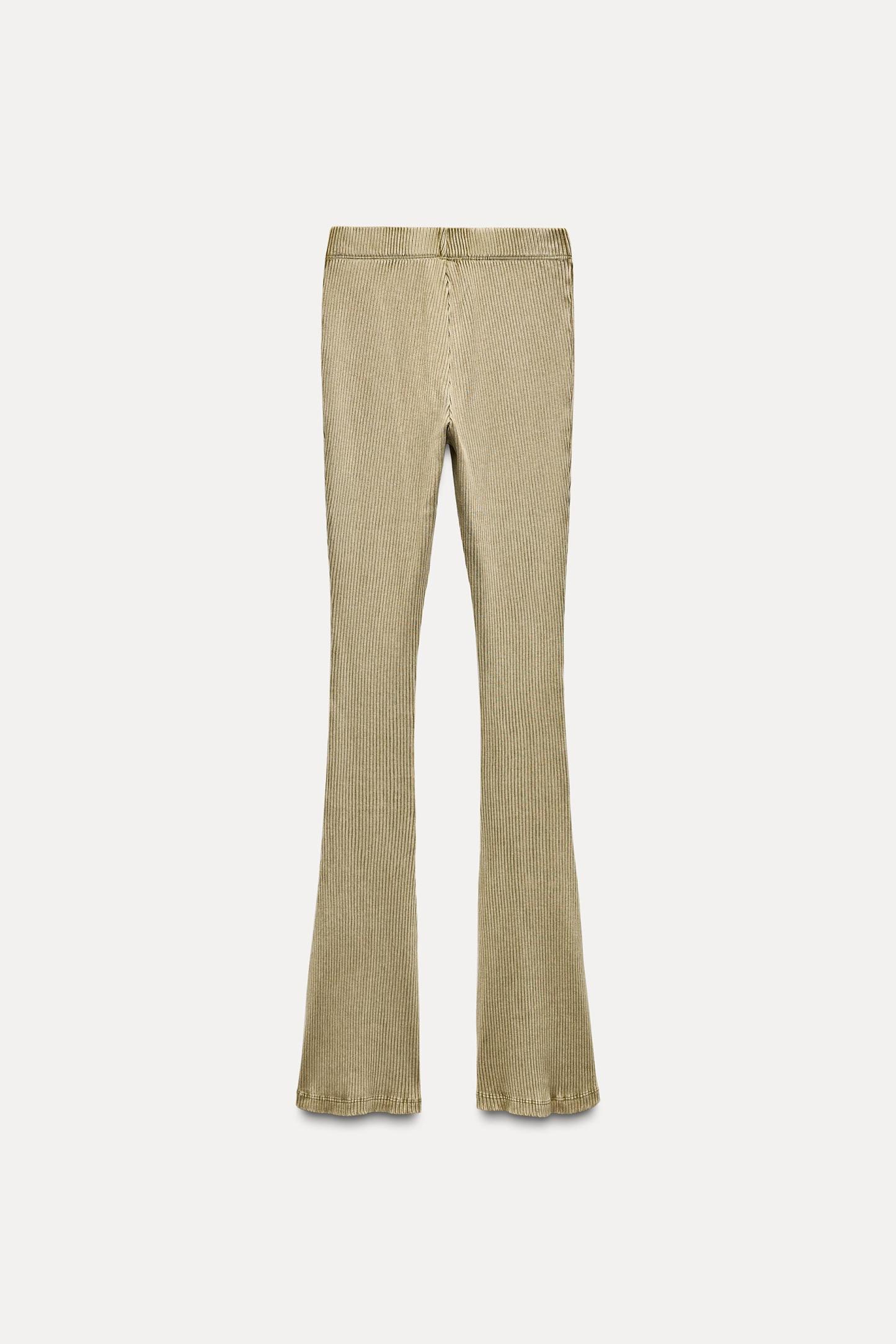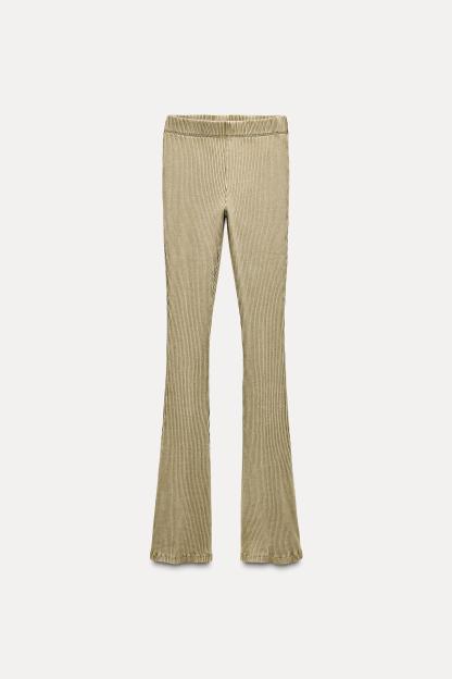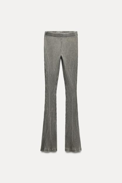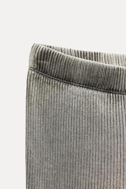 WASHED EFFECT RIBBED FLARE PANTS
