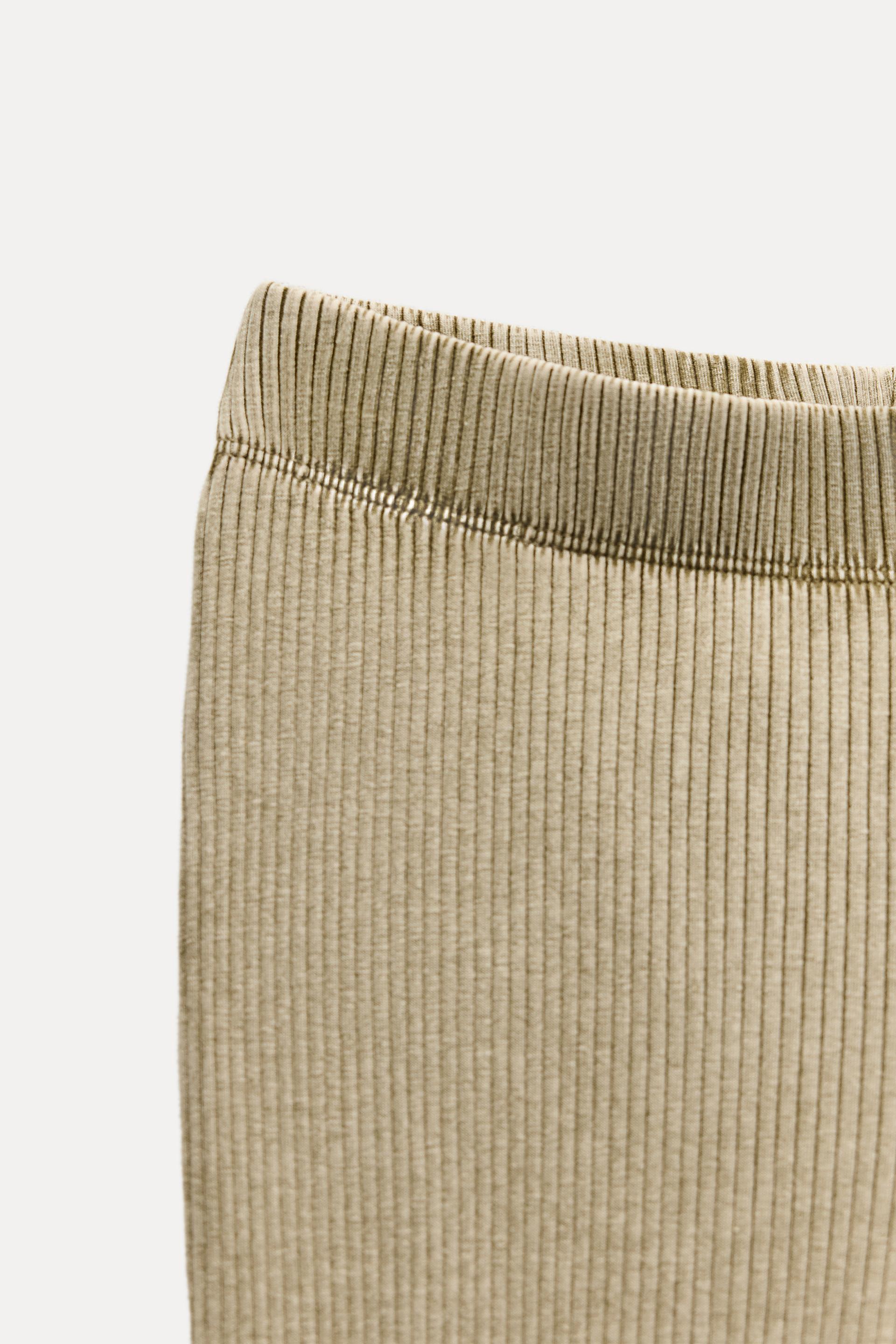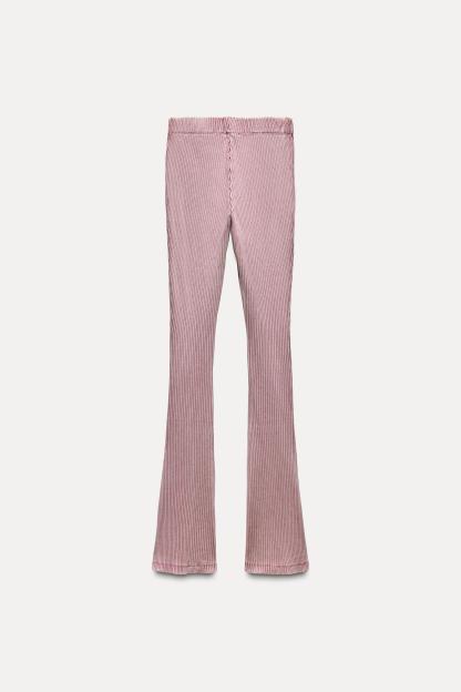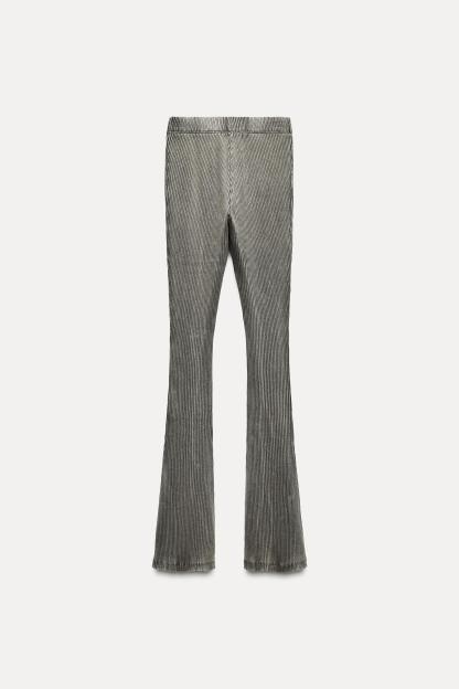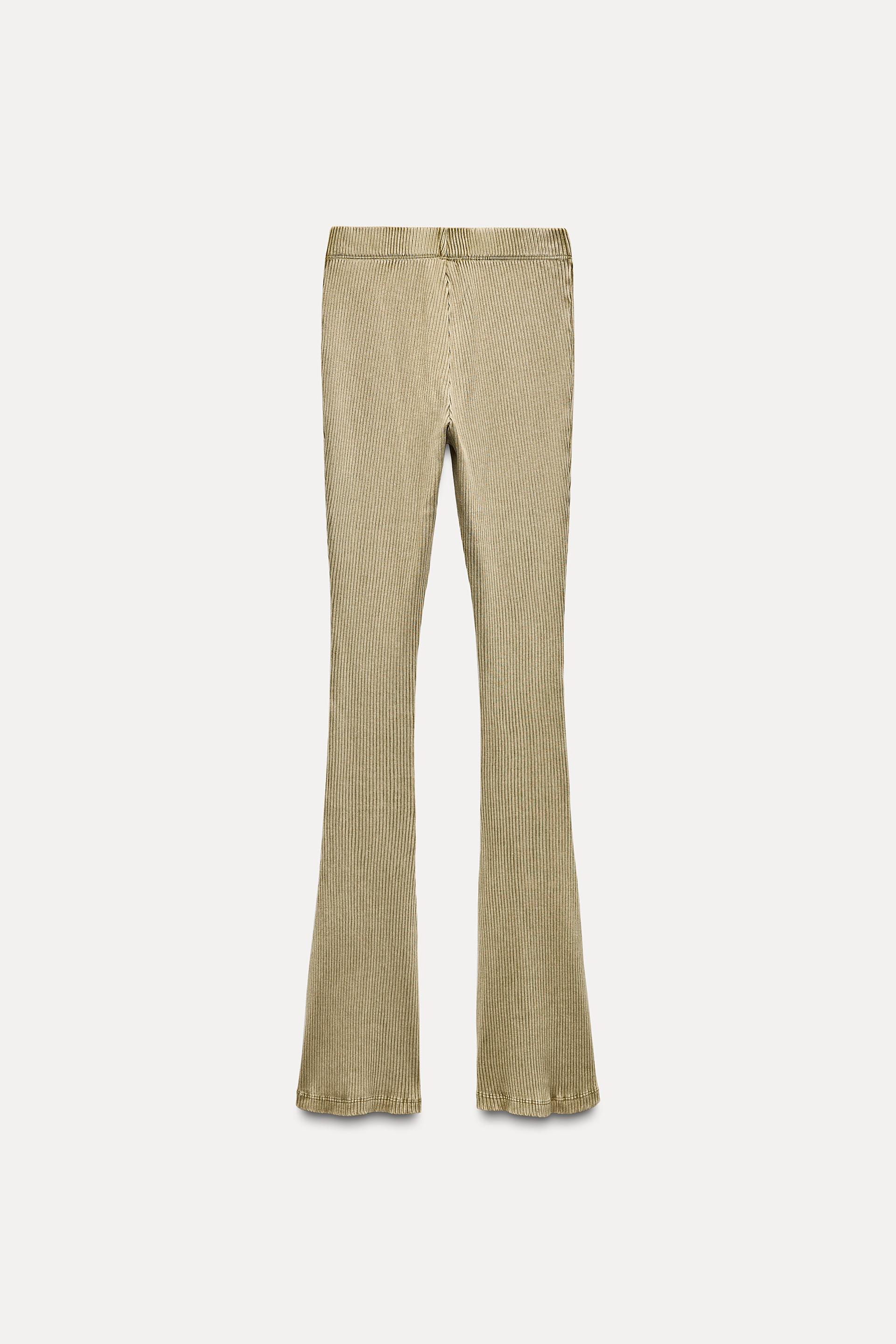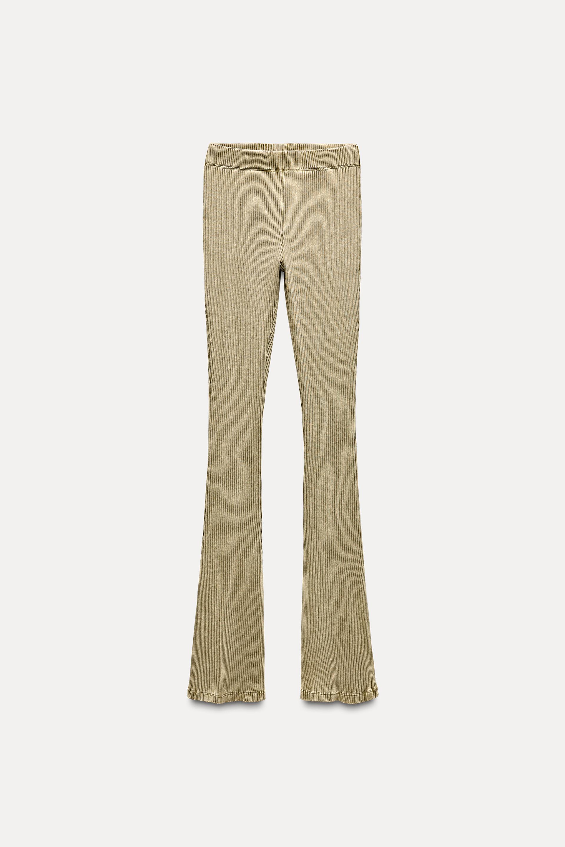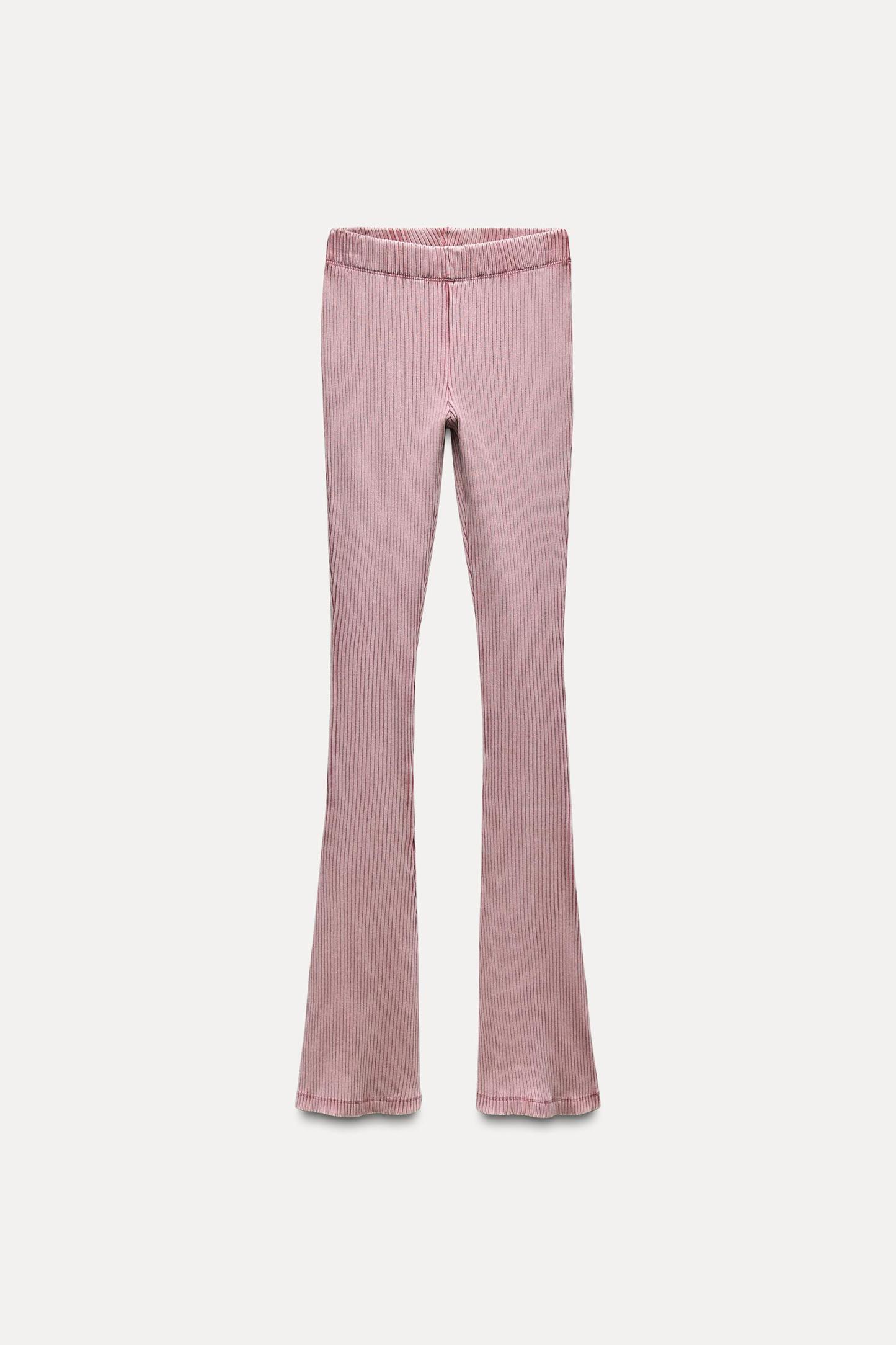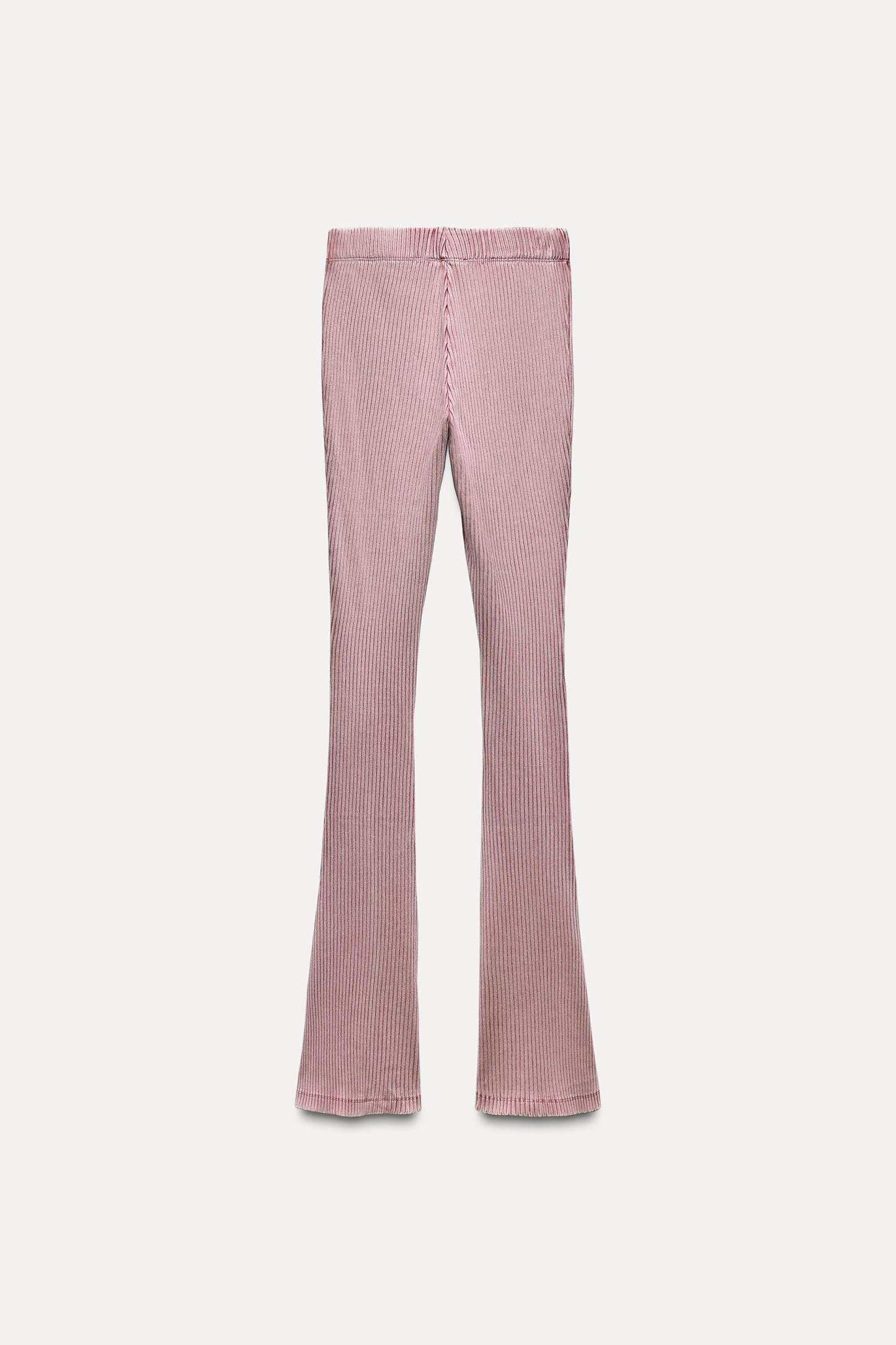 WASHED EFFECT RIBBED FLARE PANTS