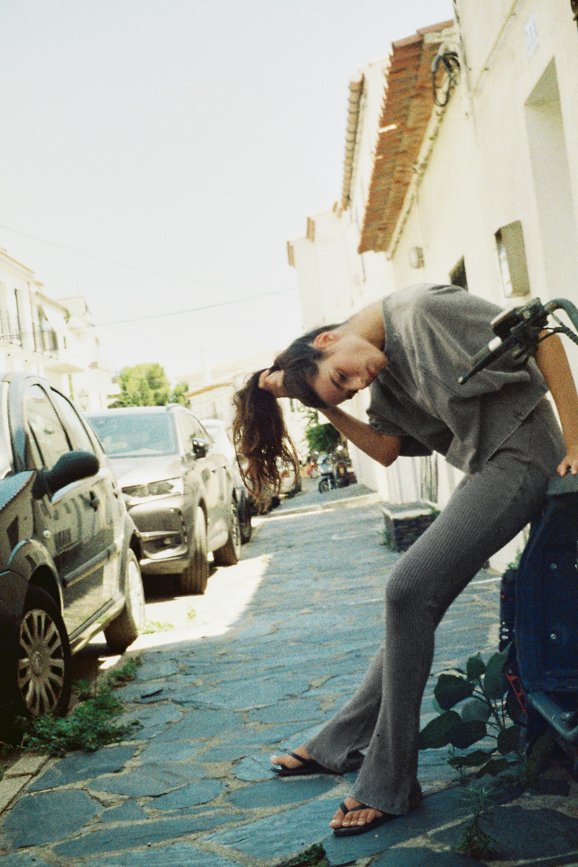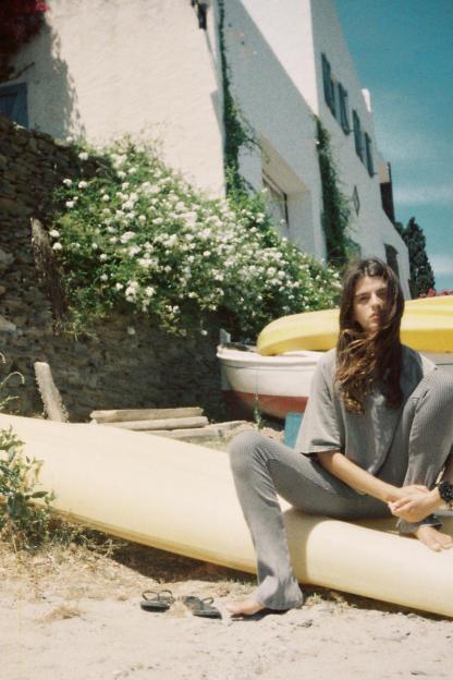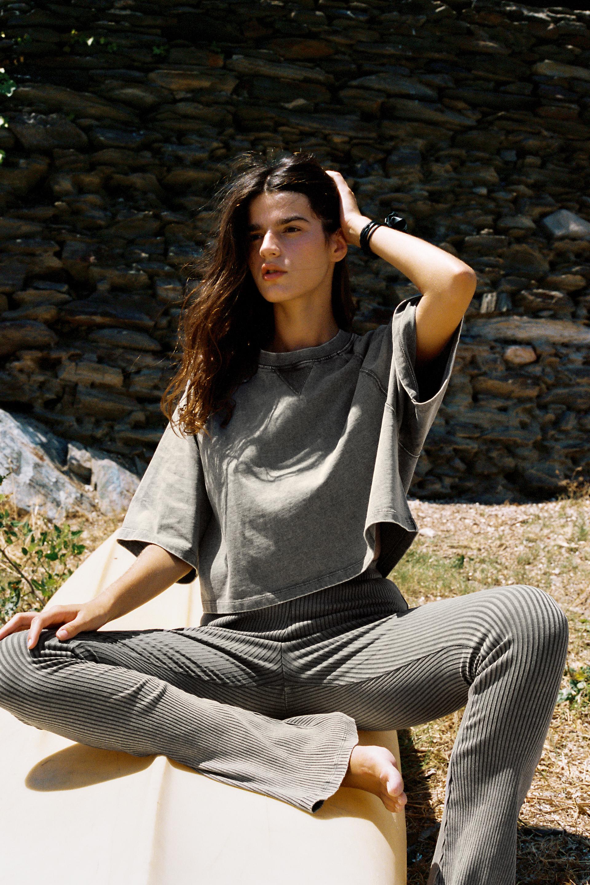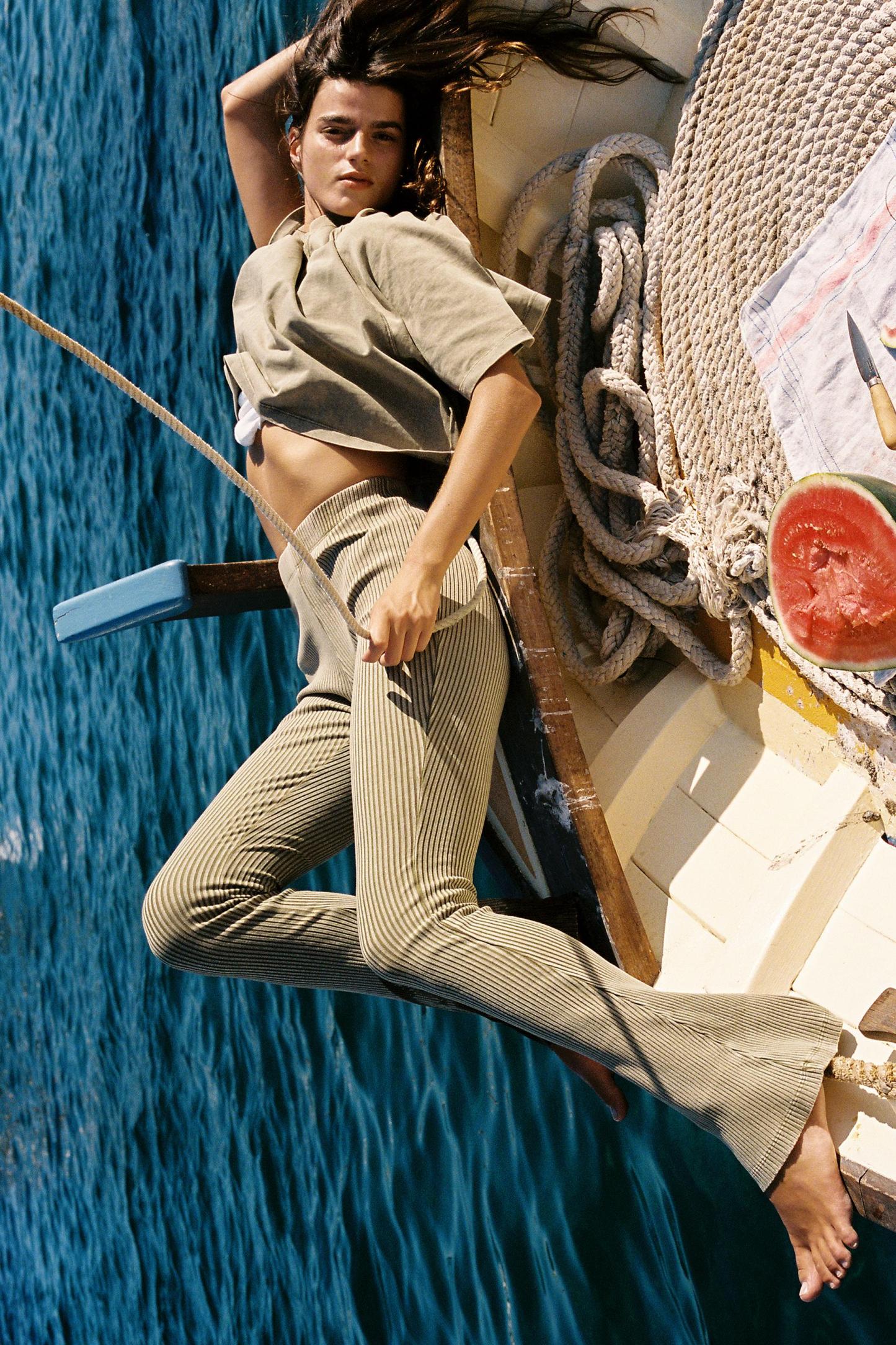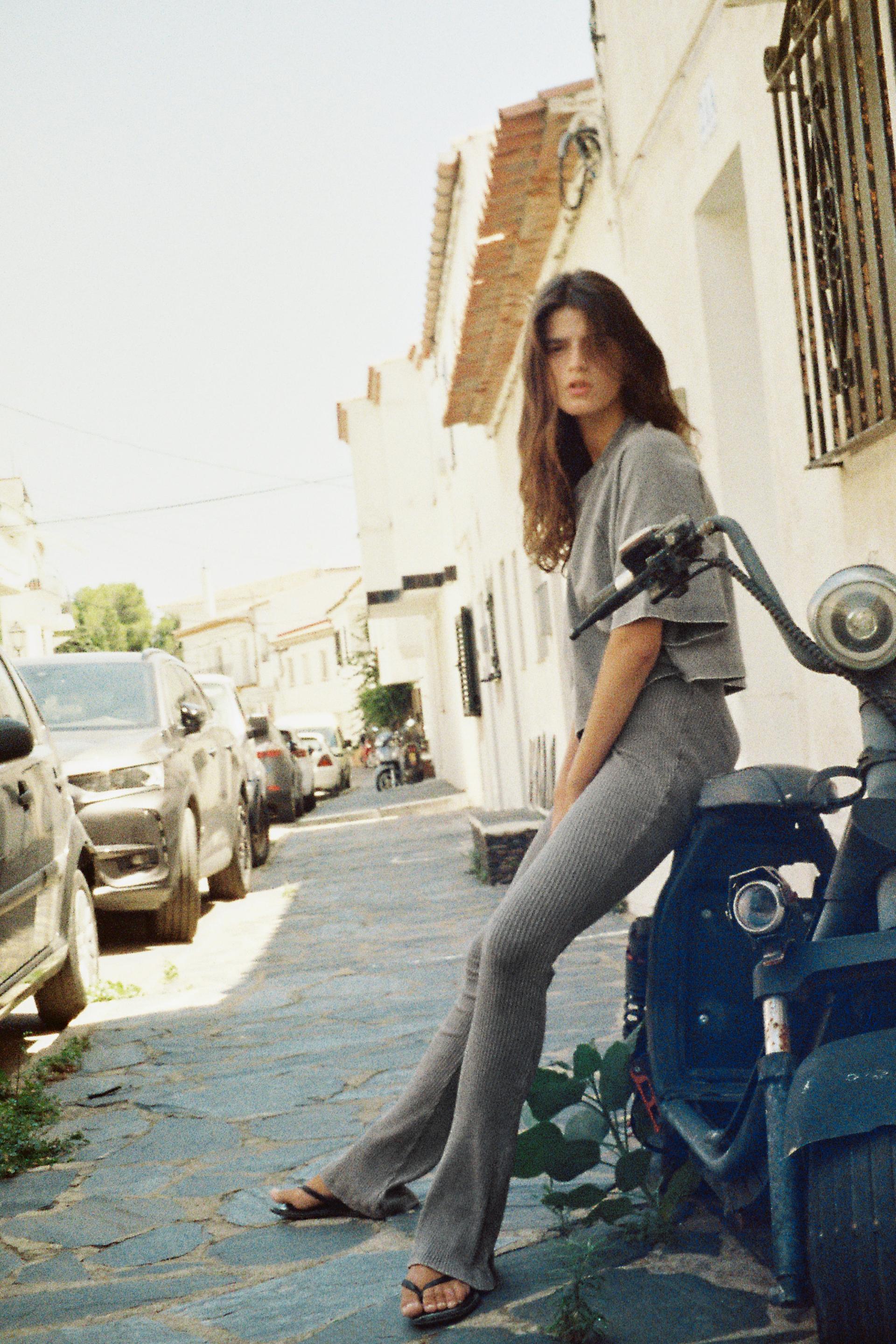 WASHED EFFECT RIBBED FLARE PANTS