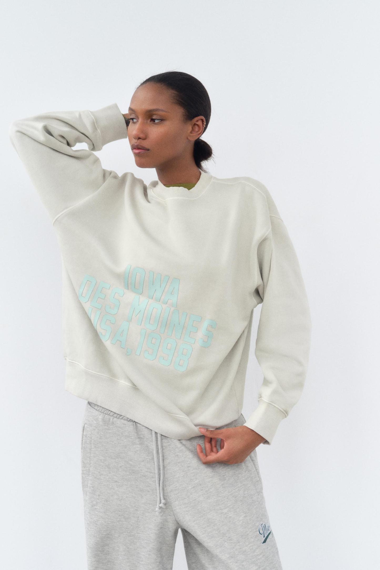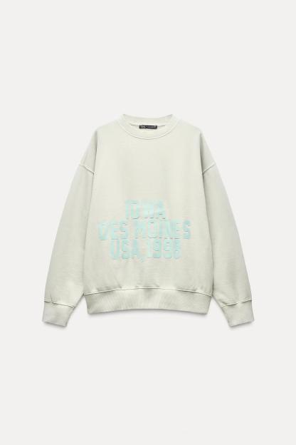 WASHED EFFECT RUBBERIZED TEXT SWEATSHIRT