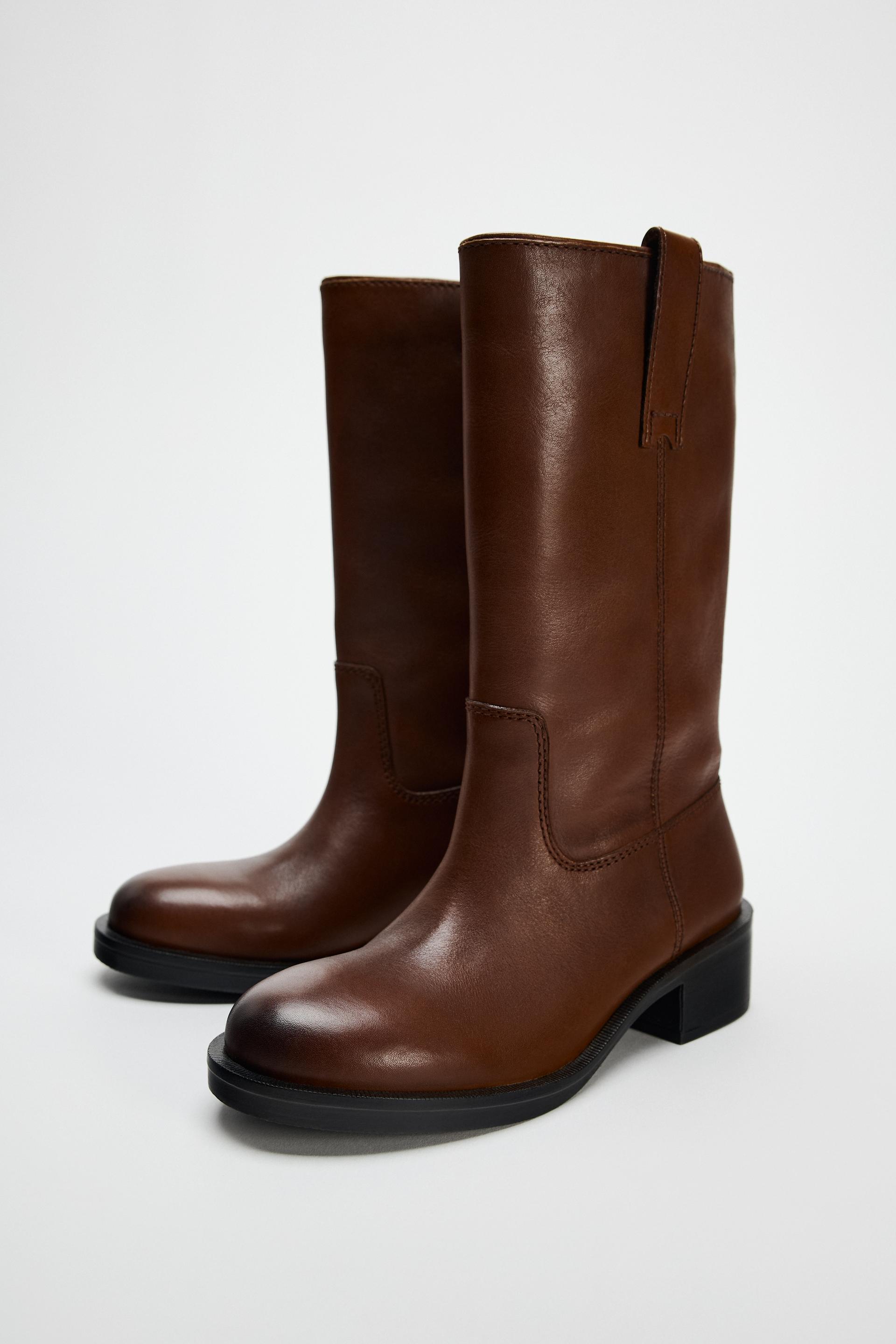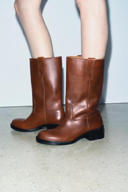 WIDE SHAFT LEATHER ANKLE BOOTS