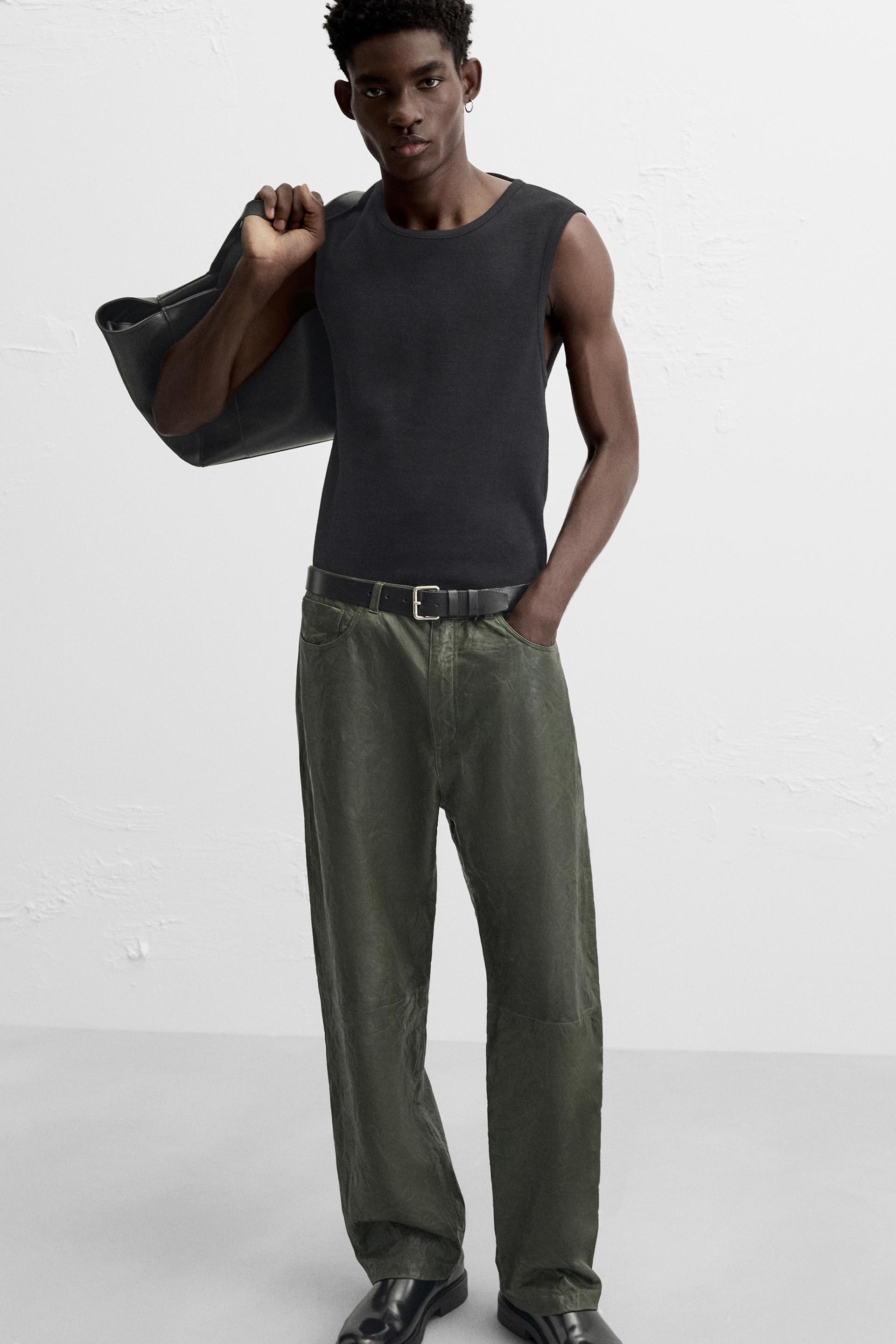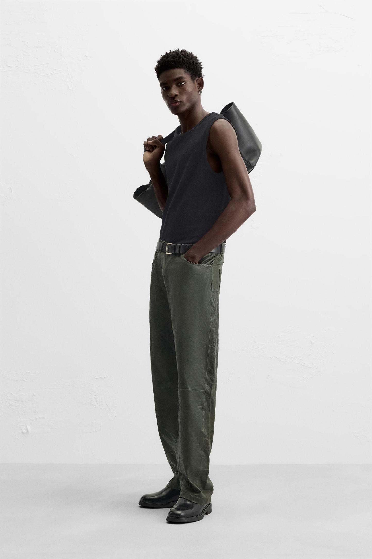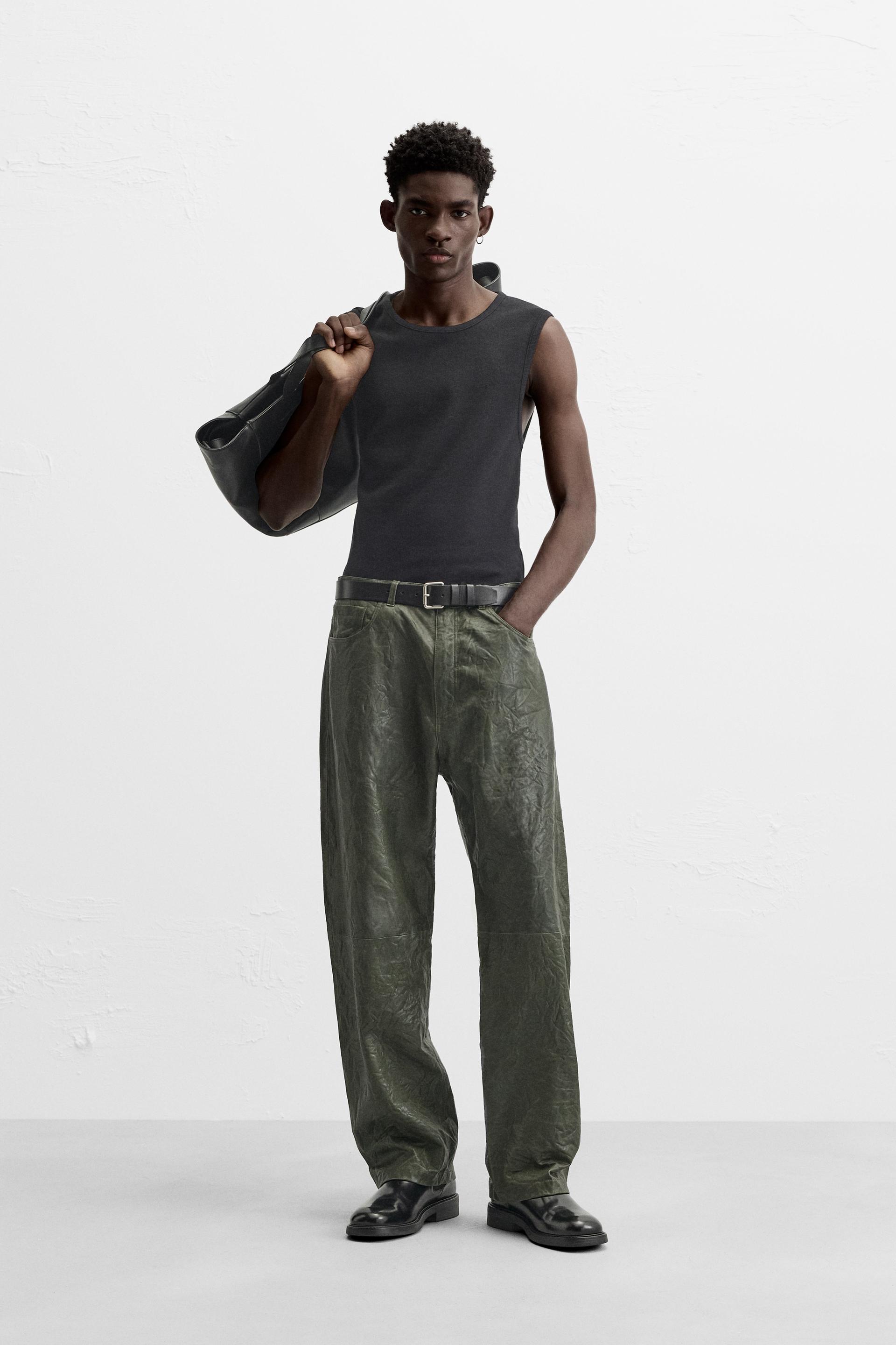 WRINKLED EFFECT LEATHER PANTS